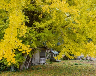 大銀杏的一根枝條因大雪壓垂至地面,並在地上扎根分枝這便是如今旁邊那棵樹齡超過200年的「天明銀杏」2013年進行的調查證實,菩提寺、阿彌陀堂與天明的銀杏具有相同的DNA