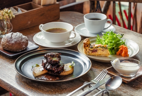 A well-loved local favorite known for its fragrant soba noodles, made from carefully selected buckwheat that is stone-milled and freshly prepared. The “Kiraku Set,” which pairs soba with a Nagi Beef steak bowl, is also a popular choice. Guests can unwind while enjoying the soothing views from the restaurant’s terrace.