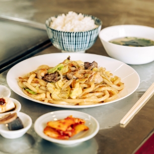A long-established yakiniku restaurant that has been loved in Nagi Town for over 40 years. In addition to premium Nagi Beef grilled dishes, the menu offers a wide variety of options. The restaurant’s signature hormone udon-stir-fried udon noodles with savory offal and a rich, house-made sauce is also highly recommended.