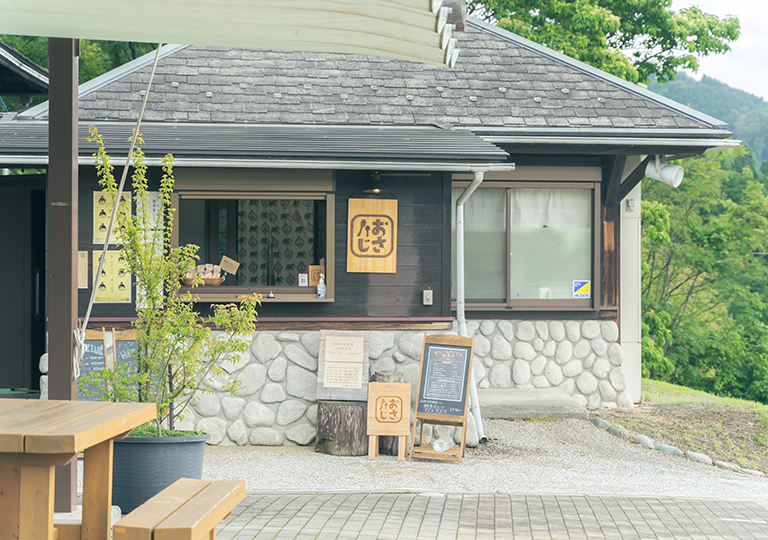 Located near the Yakushi no Taki waterfall entrance along National Route 53, this log cabin- style building features a distinctive circular design with glass walls. Surrounded by seasonal flowers and the natural beauty of the Mount Nagi foothills, it offers a relaxing setting to enjoy the scenery. Duck dishes and beef stew are especially recommended.