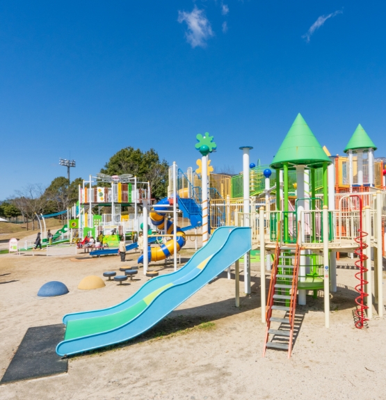 The Nagi General Sports Park is equipped with various large playground structures.