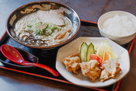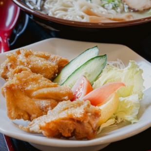 国道53号線を津山側から奈義に入ったところにある。1976年の創業以来、長い間地元に愛され続けている中華料理店。豊富なメニューはどれもおいしく、特に自家製麺を使った担々麺やコスパの良い定食が人気。