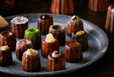 那岐山麓に2024年9月移転オープンした、全国でも希少なカヌレ専門店。岡山県産の小麦・卵・牛乳を厳選し、フランス・ボルドー地方直伝の「外カリッ中モチッ」の本格食感を追求。四季折々の旬フルーツや和素材を使ったミニカヌレは華やかで優しい甘さ、一度に色々楽しめるのが魅力です。