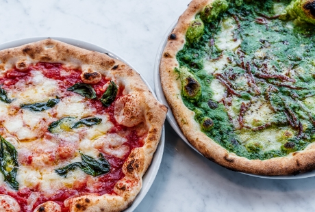 ミシュラン・ビブグルマン獲得のナポリピッツァの名店。表面はパリッと香ばしく、中はもちもち。かむほどに小麦の香りと旨味が広がり、「生地こそ主役」のナポリピッツァの醍醐味を堪能できる。