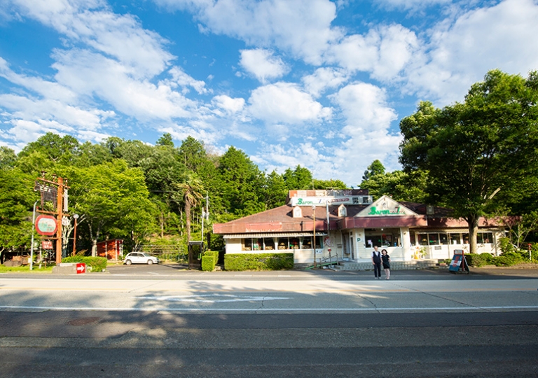 国道53号線沿いの老舗カフェレストラン。ランチメニューも豊富で、ハンバーグやカツカレーが人気。