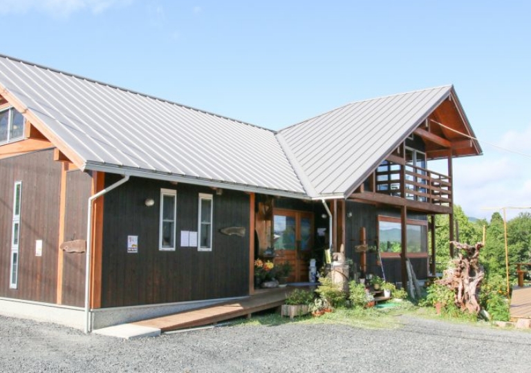 国道53号屋敷の滝入口付近に位置する、ログハウス風の円形ガラス張りの建物。周囲を彩る季節の花々や那岐山麓の自然が楽しめる。鴨料理やビーフシチューがおすすめ。